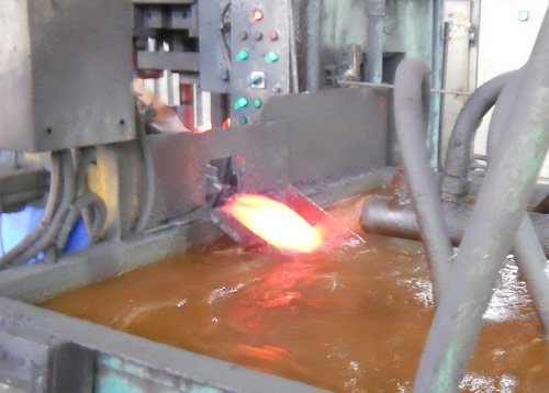 ⑴余热淬火。余热淬火处理的锻件不仅具有优良的综合机械性能,并且有工序短,生产效率高等优点。南汽锻造于20世纪70年代就在70发动机连杆锻件上就应用此技术。近年来,作为中国最大的链轨节锻件生产者,在链轨节锻件上广泛采用余热淬火工艺,在实际应用中取得了显著成果。