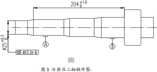 在第一道完工后,可以连续进行后续两道挤压而无需再次皂化。冷挤压的第二轴锻件,外表美观,尺寸精度高,加工余量小,质量稳定,比热锻件更受客户的欢迎。