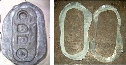 ⑴模锻件制坯工序的优化。优化制坯工序可以使坯料尽可能与锻件截面吻合。链轨节锻件经过优化,材料利用率提高10%,从飞边的大小可以看出,改进前后,飞边的大小发生很大变化。但是,很多时候,模锻件的效率更加重要,增加制坯或者制坯工序复杂耗时,都会影响效率。通常采取把制坯工序移到外面,使用辊锻机或高速冲床制坯,以节约主机有效工时。