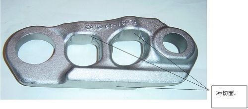 ⑶以锻代切,降低切削加工成本。链轨节的两个侧面和窗口螺母座是锻后用铣床和拉床加工出来的,南汽锻造经过数年的努力,在锻造的切边冲孔过程中,利用氮气弹簧压紧工件,将两侧面和螺母座面冲切出平面,以取代机械加工。该项目投入使用后,每件产品可节约加工工时1/3。