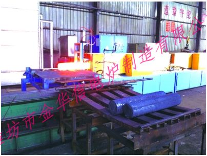 此为客户加热现场。客户是对直径180mm圆棒料,长度800-1000mm进行通体透热至1100℃左右,加热节拍为3分钟一件,然后进行挤压锻打。由于料比较的大,客户选用全智能—。包括,上料装置以及夹轨进料装置、快速出料装置以及卸料装置、并且配有测温装置实时监测和控制加热温度。 本套电炉还配备用最先进的全封闭水冷设备,增加设备使用寿命。大大减少设备使用故障。