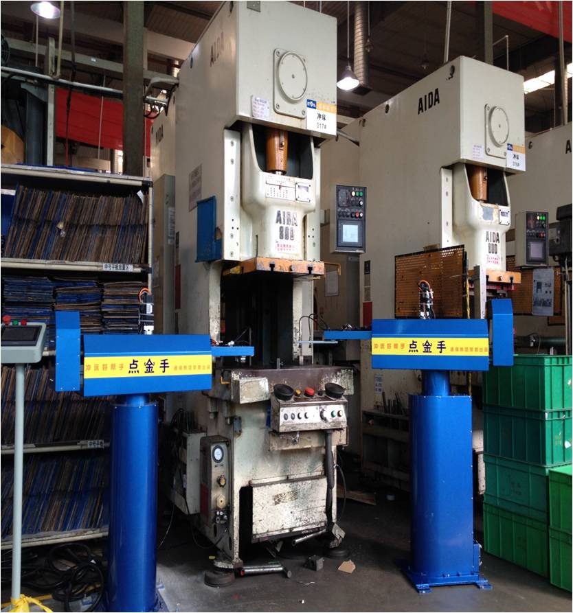 为了提高企业核心竞争力,我们引进欧洲的先进技术并与国内多所大学合作,开发出”点金手”牌冲压机械手。冲压机械手可随意连接油压机、齿轮机床、气动冲床、攻牙机、铆钉机等,无论冲床吨位大小、机台高低,都可连接,实现设备自由组合,全方位、多角度实现各种复杂冲压动作,翻转、打废料、侧挂或斜放、堆料等,并适应连续模、单机多模的工艺要求等。预存100组产品工艺信息,方便转产。识别双料和冲床两次或多次冲压,保护机器人、冲床和模具的安全并能实现远程通讯。