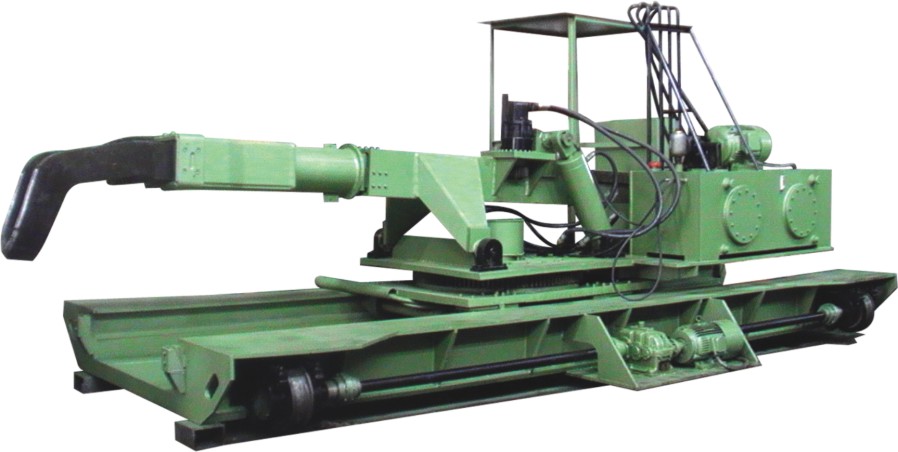 有轨锻造装取料机结构形式为机械液压混合式。按操作的工作类型可分为:夹持式、夹抱式、叉式。可完成如下动作:大车行走、小车行走、小车回转、钳杆伸缩、钳杆升降、钳头旋转。该设备用于从加热炉中装取和运送锻件,坯料。
