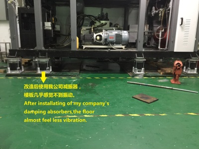 广东东莞某公司的自动塑料热成型机(塑料制杯机)安装在三楼楼板上,改造前使用的橡胶板垫在设备下,楼板振动仍然很强烈。