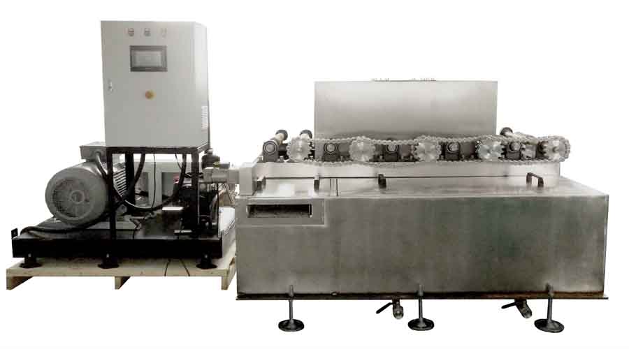 设备特点:根据产品尺寸轻松调节清洗速度,且清洗前后温度几乎没有流失、金相组织不改变,不影响生产工艺;国家实用、外观双专利保护;纯不锈钢304材质,水箱壁厚5mm,防腐蚀且耐用;选用进口电机、泵体及密封圈,经久耐用,并使用蓄能器解决耐高压、安全、清洗等问题;采用电机滚轴传送机构,保证产品360°无死角的清洗,无卡点;采用4道过滤系统,有效收集细小的氧化皮,另有收集与自动排除氧化皮的系统;采用变频技术、节能环保;为保证电机、水泵的安全,设计水位报警装置,可任意设定水位限度,便于提醒我们设备故障或维护;采用高压旋转喷头,耐压达300KG以上,在普通耐压喷头的压力基础上增长20%,提高了清洗效果;该设备可定制以下功能:来料清洗、无料停止、泄流功能、切换功能、触摸屏显示功能、排屑功能、休眠功能等力泰牌锻造氧化皮清洗设备有效改善钢坯缺陷。