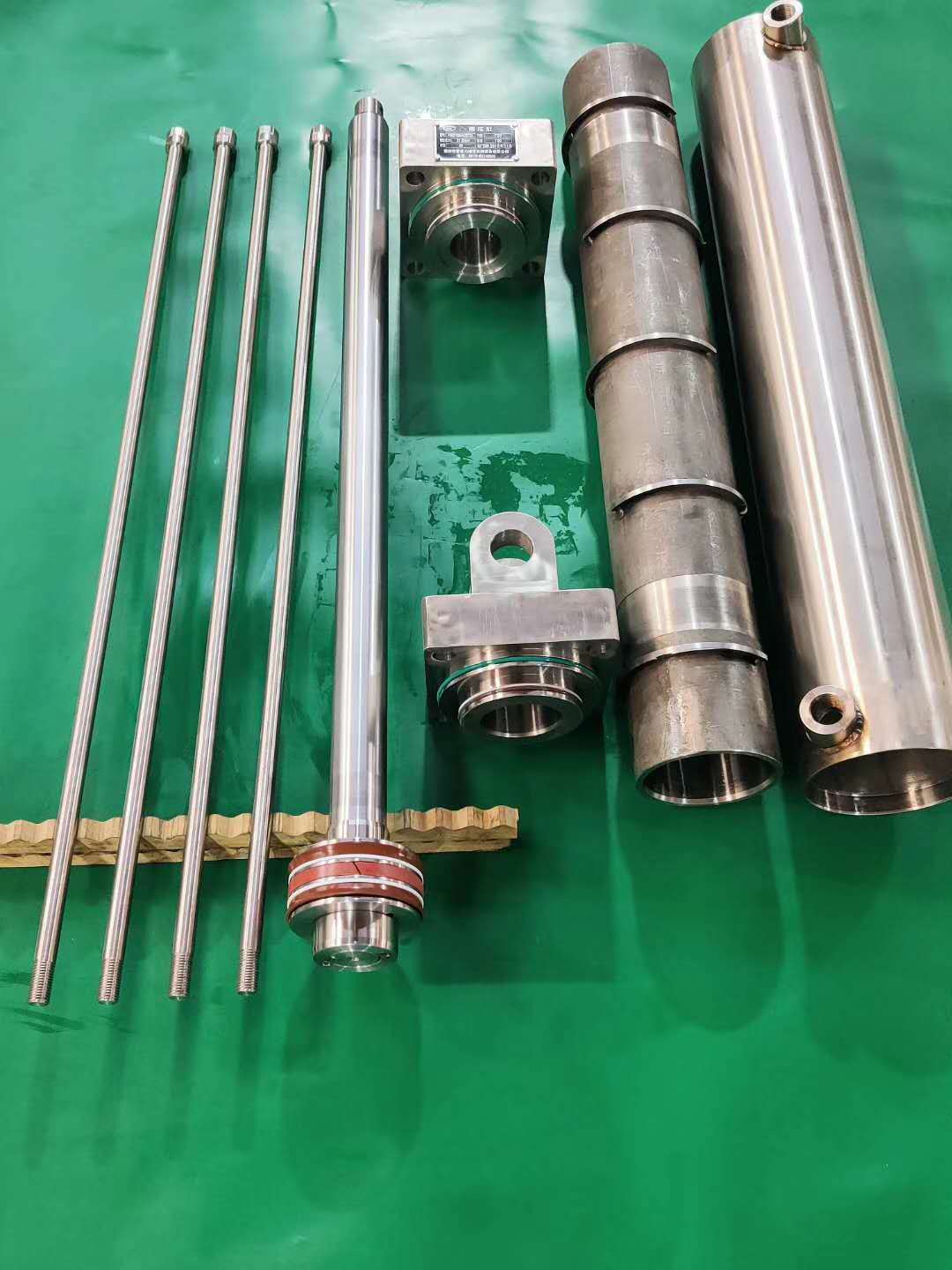 水冷却油缸,属于金属型重力铸造技术领域.该水冷却油缸,包括拉杆,导向套,油缸筒,活塞杆,活塞,缸头,所述油缸筒内设置有活塞,活塞杆固定安装在活塞上,油缸筒在活塞前进方向上设置有导向套,导向套设置有注油孔,油缸筒另一端设置有缸头,缸头设置有注油孔,油缸筒两端分别与导向套和缸头密封连接,所述油缸筒外围设置有水缸筒,水缸筒设置有出水口和进水口,水缸筒两端分别与导向套和缸头密封连接.本实用新型在油缸筒外围设置有水缸筒,在水缸筒中通入循环冷却水,达到冷却油缸筒的效果,进而通过降低油缸筒内液压油的温度达到降低与液压油接触的密封件的工作温度,提高油缸的使用寿命.