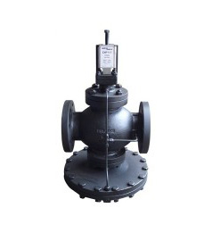 启动前导阀弹簧处于自由状态时,主阀和导阀处于关闭状态。导阀有弹簧力作用打开,蒸汽经由导阀进入主隔膜室,一部分蒸汽则经由控制孔流出,当导阀流入的蒸汽大于由控制孔流出的蒸汽,主隔膜阀中的控制压力增大,打开主阀。随着蒸汽流过主阀,下游压力的增量经由感应管反馈,作用在导阀隔膜下,平衡隔膜上部的弹簧压力,使导阀组建关闭节流,维持主隔膜中的压力,控制主阀开度输送适量的蒸汽。调节导阀隔膜上的弹簧即可改变下游压力。