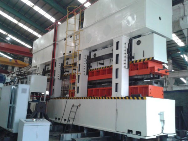 6000吨车架纵梁成形专用压力机,具有油压机和机械压力机的双重优点;用于料厚≤10毫米、长度≤12米的汽车大梁修边、冲孔、成形;应用东风汽车、大运汽车。