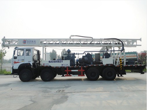◎BZC600BZY车载式水井钻机采用车载自走式,是一种车装转盘式回转钻机;