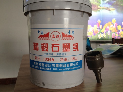 青岛南墅宏达石墨制品有限公司最新研制成功的新产品——精锻石墨乳JD26A,目前已开始批量生产,用户使用后,反映使用效果良好。 宏达精锻石墨乳JD26A,于11月20日在江苏试验成功。该产品主要应用于汽车零部件精锻、汽车内球笼精锻、温锻挤压加工、锻造全自动喷涂线等,能有效提高锻件成品率,无粘模、锻件缺陷现象发生。该产品可使锻件表面光滑细腻,生产操作顺利,提高模具使用寿命。与国外进口石墨润滑剂相比,使用该产品的企业可以大大降低生产成本。 另外,该产品的主要性能有: 1、具有特殊的润滑性、脱模性; 2、具有极高的悬浮性、高温附着性; 3、配置容易,分散性好,使用方便,无毒无害,不污染环境。
