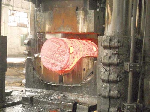 图为水压机正在锻制不锈钢轴的情景 6月6日晚,中国第二重型机械集团公司铸锻钢事业部水压机车间成功锻制出两支马氏体不锈钢轴, 顺利进入锻后热处理工序。 该轴采用电渣重熔锭生产,材质较特殊,生产难度很大。在钢锭进入车间后,技术组派专人进行全程技术服务,及时有效地解决生产过程中的技术难题。对加热温度、保温效果、坯料表面裂纹、分料尺寸、锻造温度等关键点进行现场技术服务,保证了生产过程满足工艺的要求,并对生产过程中的关键数据进行了记录和分析,为以后类似产品的生产积累了宝贵的生产经验。 |
