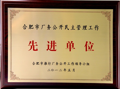 合肥市总工会发布《关于表彰全市厂务公开民主管理工作先进单位、先进工作者、优秀职工董事、优秀职工监事的决定》,决定对2007年以来在全市厂务公开民主管理工作中取得优异成绩的单位和个人进行表彰。经过逐级评选推荐,决定授予合肥合锻机床股份有限公司等28个企事业单位“合肥市厂务公开民主管理工作先进单位”称号。