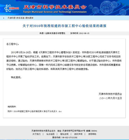 2012年5月24-26日,根据《天津市工程技术中心管理办法》的规定,市科委对2010年批准组建的天津市工程技术中心开展了验收评估工作。由天津市天锻压力机有限公司为依托单位的天津市锻压装备技术工程中心完成了任务书规定的建设指标,顺利通过验收。 天津市锻压装备技术工程中心是以成套锻压设备的研发及工程化为主要发展方向、以开发成形锻压装备新产品和成套技术装备为目标,依靠自身技术优势,跨行业的为中小企业提供一站式服务,成为锻压技术领域研发和成果转化的载体,为全国锻压装备产业的发展搭建共性技术平台,加快了我国锻压行业的发展。 工程中心采取与依托单位—天津市天锻压力机有限公司一体化运行的方式进行经营和管理。天津大学机械工程学院、天津大学电气与自动化学院、天津理工大学材料科学与工程学院以自身在锻压技术工艺、模具开发设计、成套装备研发等方面的技术优势、设备优势及拥有的自主知识产权作为资产参与中心的组建,为中心的持续发展提供可靠的技术保障。 工程中心已完成板材成形工艺及板材成形性分析实验室、液压设计研究室等基础设施建设,通过购置BCS50AR热环境通用板材成形试验机等一批先进水平的试验仪器,并整合依托单位电液伺服万能试验机、微机控制电子万能试验机等研发试验设备,使整体科技创新能力处于国内领先水平。