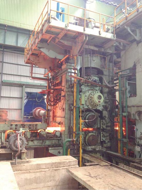图为1500mm热带钢连轧机生产线设备热负荷试车场景。