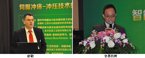 舒勒贸易(上海)有限公司 Mr.Thomas Buschmann为大家带来了《伺服技术案例—更高的竞争力,更强的灵活性》的主题报告。给大家介绍了舒勒伺服压力机强大的功能。协易机械工业股份有限公司的报告《先进制造工艺的设备—伺服冲床》,介绍了我国冲压钣金行业在世界同行中所处的地位,国内同类企业繁多,低端竞争激烈,企业之间相互压价,使企业陷入微利状态。并提出八个方面的措施来加以改进和提高制造业的现状。最终指出中国锻压制造未来的重点要放在智能制造、绿色制造和服务性制造上。