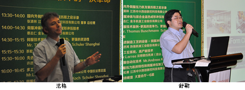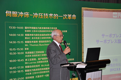 中国锻压网消息 (记者韩图布新 北京报道)第七届中国国际金属成形会议暨2012年全国冲压钣金厂长会议,9月9日下午,第七届中国国际金属成形会议《伺服冲床—冲压技术的一次革命》会场由中国锻压协会冲压委员会副主任委员单位、恒基创富(佛山)金属制造有限公司总经理 刘华鸿先生主持,并特别邀请了江苏中兴西田数控科技有限公司董事、总经理 张清林先生、金丰机器工业股份有限公司研发经理 蔡志仁先生、舒勒贸易(上海)有限公司 Mr.Thomas Buschmann、协易机械工业股份有限公司成形技术协理 徐进鸿先生、法格锻压机床(昆山)有限公司中国区运营总监 Mr.Larrea、舒勒贸易(上海)有限公司的 Mr.Andreas Koch、江苏中兴西田数控科技有限公司技术顾问 小松勇先生出席会议并作了关于伺服压力机技术的精彩报告。