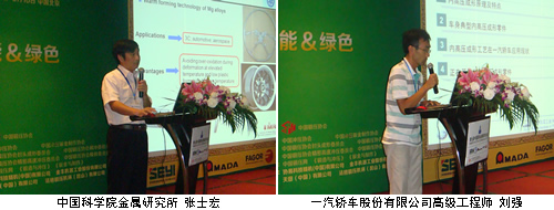 中国科学院金属研究所张士宏先生带来的报告《汽车轻量化的工艺实现方式与进展》,介绍了特薄壁管型材弯曲成形工艺及汽车轮毂铸旋成形新工艺。一汽轿车股份有限公司高级工程师 刘强先生带来题目为《内高压成形工艺在一起轿车的应用》的报告,介绍了内高压成形工艺原理、特点及在轿车上的应用情况,展示了一汽轿车现有车型内高压成形零件,组建了国内主机厂首条内高压生产线,展望了一汽轿车新车型潜在内高压成形零件。
