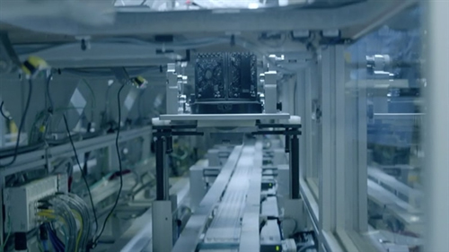 Mac Pro 的生产过程采用了隐藏式部件传输系统,它能够更好地利用空间,而且还尽量避免灰尘的进入,最近在工厂间流行。