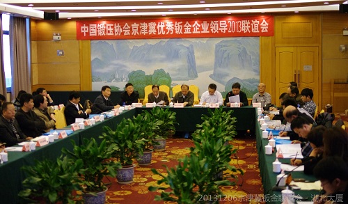 由中国锻压协会主办,河北省廊坊市工业经济联合会、沧州市工业经济联合会、南皮县经济团体联合会、青县经济团体联合会协办的“京津冀优秀钣金加工企业领导2013联谊会”于2013年12月6日在湖北大厦三峡厅成功举办。本次活动是2014中国国际金属成形展的推广活动之一。 共有来北京、香河、青县、南皮等地共27家企业的36名企业高管参加本次联谊会,廊坊工经联的崔万友副会长、南皮经团联的刘金廷会长和青县经团联的王吉林会长会前做了大量调研工作,就各自区域的钣金加工企业历史、现状和发展趋势做了专题报告。 综合而言,这三个地区都存在着企业数量多,整体规模小,龙头企业少,竞争激烈,整体附加值低的特点。不过最近几年,当地的一些规模较大企业在行业协会和政府的帮助下,召开了多次培训和企业考察,在设备、技术、投入方面有了较大水平的提升。