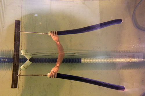 9、2012年10月2日,研究生Baker Potts在新奥尔良大学工程馆内拿着一个机器鳗鱼原型。这种机器鳗鱼或许能够在危险水域蜿蜒前行,在寻找水雷的时候以极少的能量移动,而且几乎不会被雷达探测到。