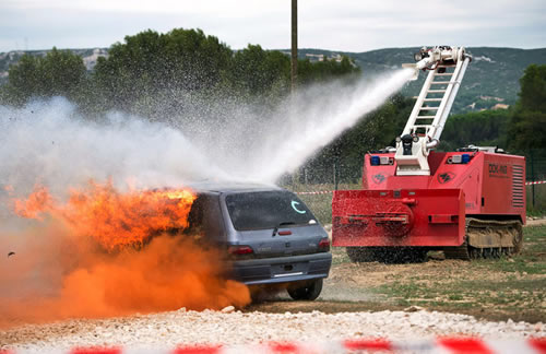 3、Dok-Ing 公司开发的MVF-5多功能机器消防系统正在喷射水炮,这是国际应急管理学会(TIEMS)举办的年度会议的部分展示内容。