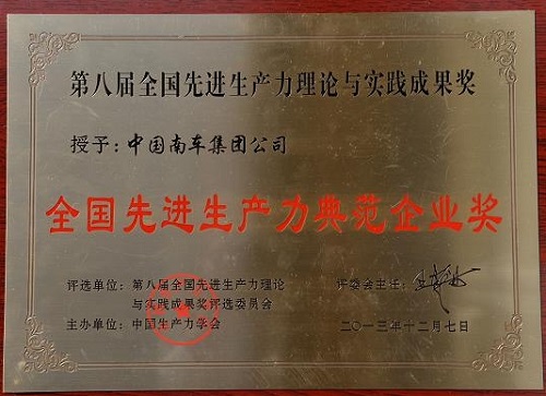 12月7日,由中国生产力学会主办的“第八届全国先进生产力理论与实践成果奖”颁奖典礼在北京举行。中国南车荣获“全国先进生产力典范企业奖”,公司董事长郑昌泓荣获“全国先进生产力杰出人物奖”。