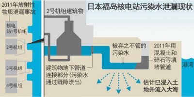 8月7日,日本政府核能灾害对策总部对外公布,目前每天有超过300吨的受放射性物质污染的地下水从福岛第一核电站反应堆的厂房附近直接流入太平洋。该消息引发了日本国内及国际舆论的强烈震动,预计此次事件将造成难以控制的危急局面。 据了解,由于目前无法断定受污染的水向大海泄漏从何时开始,因此无法确定是否从核事故发生后就一直处于泄漏状态。据日本《朝日新闻》报道,受污染的水可能在未来3周内到达地表,进而污染周边大片土地。 7月22日,核电站运营方——日本东京电力公司(东电)首次承认,自从核事故发生以来,已经有20—40万亿贝可勒尔的放射性物质氚泄漏进大海。 日本《东京新闻》8月7日称,东京大学生产技术研究所当日公开的一项最新调查报告显示,在福岛第一核电站周边20公里海域内,海底泥土中的放射性物质含量较外部海域高出2—10倍以上,且多集中在海底的凹陷地带。该消息佐证了受污染水确实已对周边海域形成影响。