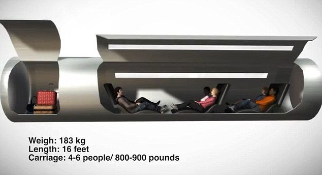 超级环路列车乘员舱的设计 根据埃隆·马斯克的设计,相隔1,000英里(1,600公里)之内的城市都可以建造超级环路列车,提供人员的运输效率,如果超过这个距离还是坐飞机更好一些。从图中可以看出超级环路列车的乘员舱的设计:整体分为两个部分,乘坐6至8人,行李放置集中放置在一端,重量控制在800至900磅。