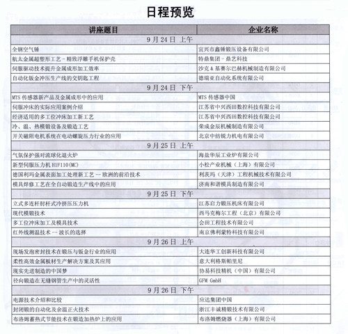 “金属成形展览会,服务周到全方位,产品技术齐荟萃,锻压前景似祥瑞!” 9月24日,由中国锻压协会主办的2013中国国际金属成形展览会将在上海世博展览馆隆重来开大幕。本届展览总面积达2.5万平米,参展商达300余家,来自德国、日本、意大利、英国、西班牙等10余个国家和地区,集中展示数百台套冲压、钣金和锻造设备、模具、自动化设备、周边辅助设备、检测设备、各类锻件、冲压件和钣金件等等。展会期间,将由展商和高校及科研院所专家提供20余场“新产品、新技术”讲座。 本届“新产品、新技术”发布会受到了众多专业人士、媒体、用户和潜在购买者的大力关注。特鼎集团、荣成机械、小松机械、西马克梅尔、意大利格斯帕里尼和浙江丰城等企业都带着公司最新、最高的产品和技术来到发布会现场,通过现场讲解和演示,让观众第一时间了解金属成形领域的新成果,也期望本届展览会能够为所有观众带来更多的期待和看点。 无论是技术革新还是产业资讯方面,了解产业政策方向、把握产业技术走向、洞察产业发展环境,中国国际金属成形展览会希望能够为国内外企业提供一个更好、更优质的交流平台。怎样扩大营业规模、生产规模?如何达到低成本高性能的解决方案?如何让产品成功进入国外市场?这些都能让您在本次展览会中得到最佳答案。让我们一起关注本届展览会,与锻压行业齐成长!