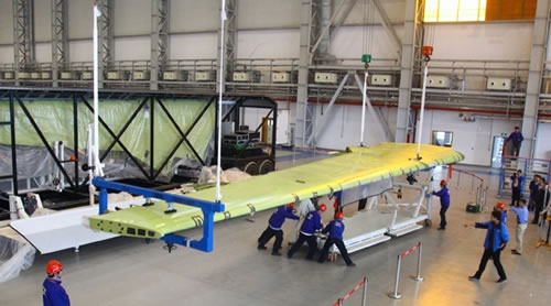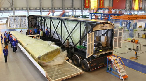 2014年11月24日凌晨,C919大型客机首架机机翼抵达中国商飞公司总装制造中心浦东基地,这是C919项目研制过程中第六个交付的大部段。 据悉,西安飞机工业(集团)有限责任公司完成对C919大型客机首架机机翼的装配后,于11月22日上午9时19分装箱,经过长途跋涉,于24日凌晨抵达中国商飞公司总装制造中心浦东基地。C919大型客机首架机机翼开箱后,现场人员共使用两台行车6个吊钩对机翼进行转架。 目前,C919大型客机首架机百日攻坚工作正有序推进,11月22日下午,C919大型客机机身后段(中后机身、后机身前段)已转架成功。