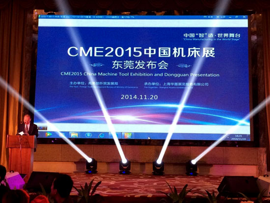 一直被称作“世界工厂”——东莞吸引着全世界的投资目光,不少海内外知名企业纷纷来到东莞开设分公司。如今,中国制造业迎来新的机会、新的挑战,越来越多国际行业巨头与国内公司通过合作增进企业实力。合作需要通过良好的交流才能快速有效地达到共识,一届盛大专业的机床展会将能掀起一场“头脑风暴”。 “2015CME中国机床展华南发布会”于11月20日在东莞厚街国际大酒店隆重召开。出席会议的领导及嘉宾有:商务部外贸发展局祝书海处长、华墨展览总经理王国平先生、中国机床展项目总监何籽璇女士等。众多行业精英、合作伙伴及媒体朋友共300余人受邀参加了此次发布会。