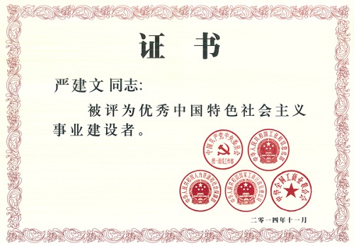 合肥合锻机床股份有限公司董事长严建文在带领企业发展的同时,始终坚持履行社会责任,时刻践行者一个优秀民营企业家的使命、践行着建设中国特色社会主义事业,服务社会的使命。严建文董事长获此殊荣,既是对他个人在非公有制经济领域做出贡献的肯定,也是对公司在科技创新、技术研发、社会责任等方面的高度认可。本次表彰大会前,严建文董事长还应邀参加了人民网——“第四届全国优秀建设者系列访谈”,并就企业科技创新、人才队伍建设等与网民进行了在线交流。 据悉,“全国优秀中国特色社会主义事业建设者”评选活动每五年一次,2004年至今已举办三届,大会由中央统战部、工业和信息化部、人力资源社会保障部、国家工商行政管理总局和全国工商联联合举办,在全国范围内公开评选,最终表彰100名在非公有制经济领域拥有杰出贡献的优秀中国特色社会主义事业建设者。