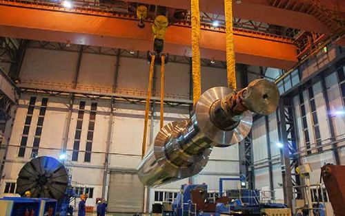 近日,二重集团重点产品CAP1400核电转轴在电轧厂万力公司完成全部精车序,安全地吊运至镗床进行最后一道工序加工。