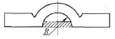 (3)尽可能采用封闭及对称结构 模具形状为开口或不对称结构时,淬火后应力分布不均匀,极易变形。所以一般易变形的槽形模具,应尽量在淬火前留筋,淬火后再切除,图5所示的槽形工件,原来淬火后在R处发生变形,经加筋(图5中阴影线部分)后,能有效地防止淬火变形。