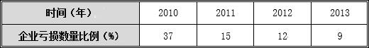 表4 2010-2013年企业亏损数量比例