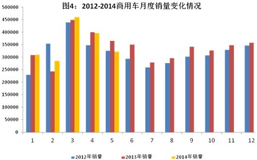 2.自主品牌乘用车销量同比增长5.4% 5月,自主品牌乘用车销售58.06万辆,同比增长5.4%,占乘用车销售市场的36.5%,较2013年同期下降2.9个百分点;其中,自主品牌轿车共销售21.66万辆,占轿车销售总量的21.5%,较2013年同期下降5.1个百分点。 1~5月,自主品牌乘用车共销售306.4万辆,同比增长0.9%,占乘用车销售市场的38.0%,占有率同比下降3.8%;其中,自主品牌轿车共销售116.04万辆,同比下降15.8%,占轿车销售总量的22.5%,占有率同比下降5.7%。 (二)5月商用车销量同比下降12.0% 5月,商用车生产32.62万辆,同比下降9.6%,环比下降18.5%;销售32.08万辆,同比下降12.0%,环比下降18.8%。 1~5月,商用车共生产181.85万辆,同比增长2.4%;销售176.80万辆,同比增长0.1%。