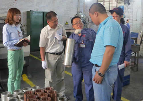 马夸特对秦汉冷锻冷精锻件进行审核 7月15日马夸特主要深入工厂一线,对秦汉冷锻的生产工艺、生产设备、各个环节的操作标准、质量控制等进行了深入的考察审核,并对其中的一些操作规范及质量控制措施的完善进行了深入的指导。