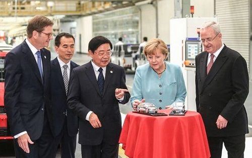7月7日,在中国国家总理李克强和德国总理默克尔的见证下,中国第一汽车股份有限公司与德国大众汽车股份公司在北京签署了“关于建立一汽-大众新生产基地联合声明”。