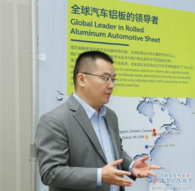 图为:诺贝丽斯中国区董事总经理兼亚洲汽车业务副总裁 刘清 应用车型“下探”成本趋向均衡 根据美国铝学会报告,汽车每使用0.45Kg铝就可减轻车重1Kg。而对于一辆1300Kg重的轿车,若重量减轻10%,其燃油消耗可降低8%。这在节能减排政策不断缩紧形式下,对车企来说无疑是一剂良药。