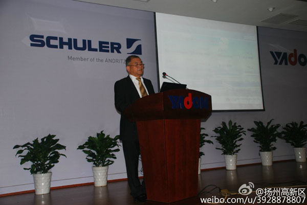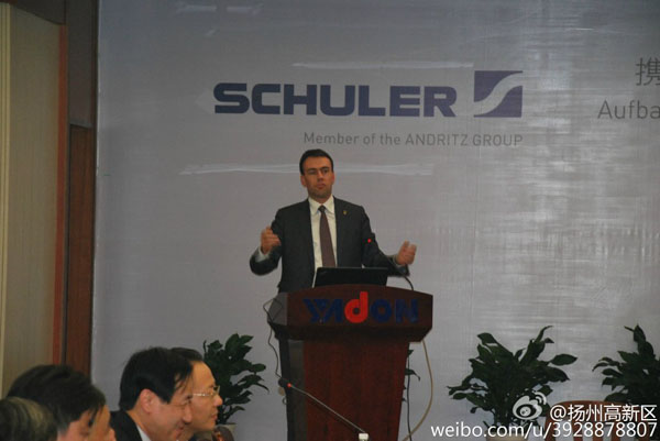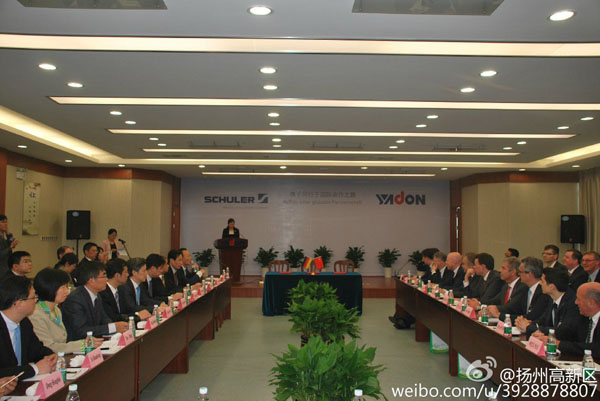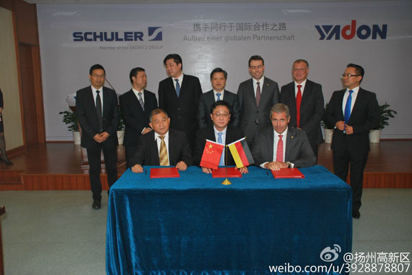 据来自江苏省扬州高新技术产业开发区官方微博的消息。10月22日,以德国巴符州副州长兼财政经济部长尼尔斯•施密特(Nils Schmid)为首的巴符州代表团赴扬州高新区考察调研,德国舒勒(Schuler)集团与扬州锻压机床(Yadon)股份有限公司签订战略合作协议。这是高新区继金方圆与德国通快合资后又一次强强合作。