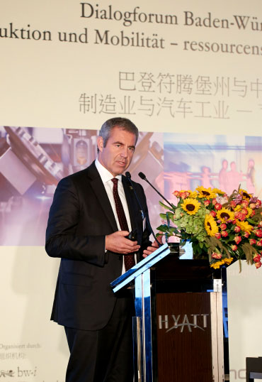 图1: 舒勒董事会主席Stefan Klebert 先生在德国巴登符腾堡州与中国对话论坛上发表题为“效率引领创新”的主题演讲