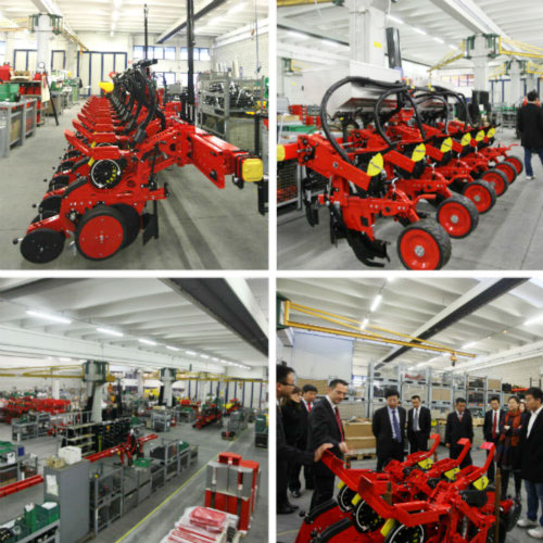 中国农机行业代表团参观雷沃马特马克工厂 代表团大巴驶离雷沃阿波斯集团后的下一站是雷沃马特马克工厂。沿途漫漫的秋色、美丽的小镇、休耕的土地…中间几个小时的车程,代表团成员们将欧洲现代农业的特色风情尽收眼底。一方水土养一方企业。尽管抵达时已近傍晚,但沿途油画般的景致时刻在提醒着代表团成员们这是一家有历史积淀和底蕴企业。 马特马克公司成立于1983年,是享誉欧洲乃至世界的高端农机具企业,业务覆盖全系列精量播种机、条播机、蔬菜播种机、中耕机产品,其全球领先的播种机排种器和电控系统,是马特马克拥有自主知识产权的核心技术。因为马特马克农机具产品在中国有较好的市场基础,所以提及马特马克产品很多国内用户对其并不陌生。 2015年1月,继收购ARBOS之后,雷沃重工再次出击,全资收购欧洲高端农机具品牌马特马克公司(MaterMacc),再次展现了其在整合全球资源方面的能力与视野。 “就像农机具行业的法拉利,马特马克最大的特点是高技术。”据马特马克工厂一位意大利籍的销售管理人员介绍,在雷沃重工收购前,马特马克公司经过32年的发展,已从占地400平方米发展到6万平方米,并成为欧洲乃至全球的高端农机具生产企业。在2014雷沃重工年完成收购后,马特马克工厂又在欧洲属地招聘了近20人补充到产品研发等部门,进一步开发完善在全球市场特别是符合中国市场农艺条件的产品组合。“未来中国市场会是马特马克非常重点的一个目标市场,去年我们在中国的销售额是150万欧元,并购完成后今年我们在中国的销售额达到了将近550万欧元,未来在全球的市场空间也将非常巨大。” 马特马克公司最大的优势是精量播种。现在已经成为中国第一大粮食作物的玉米,它的产量和种植面积都超过了水稻,但是目前在这个产业里面最需要解决的是播种质量问题。据一位国内的专家介绍,他们曾在黑龙江做过试验,在同一块地里面,一边是马特马克的精密播种机,一边是国产的精密播种机,到秋收时的产量要差10%。