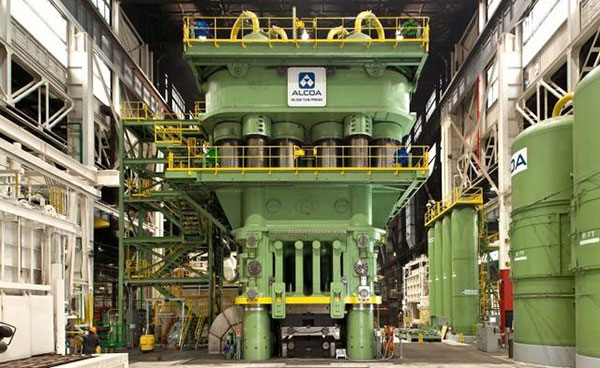 美国铝业位于俄亥俄州克利夫兰工厂的45000吨模锻水压机。1955年由梅斯塔(MESTA)公司制造。 美铝在2011年前投资1.1亿美元对其翻新,用于制造F-35战斗机零部件。