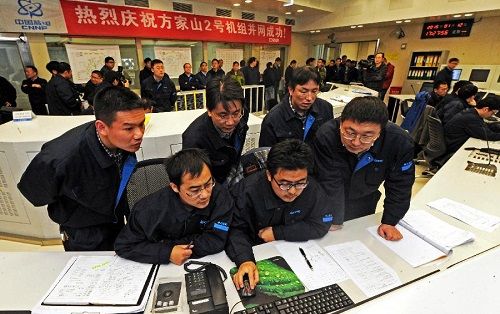 1月12日,秦山核电站扩建项目方家山核电工程2号机组主控室,操纵员在监测核电机组运行 近日,秦山核电厂扩建项目方家山核电工程2号机组成功并网发电。至此,秦山核电基地现有9台机组全部投产发电,总装机容量达到654.6万千瓦,年发电量约500亿千瓦时,成为目前中国核电机组数量最多、堆型最丰富、装机最大的核电基地。截至2014年12月31日,秦山核电基地已累计安全发电3327.46亿千瓦时,相当于少消耗标准煤约1.07亿吨,减排二氧化碳约3.5亿吨、二氧化硫约233.38万吨,相当于造林95.18万公顷。 |
