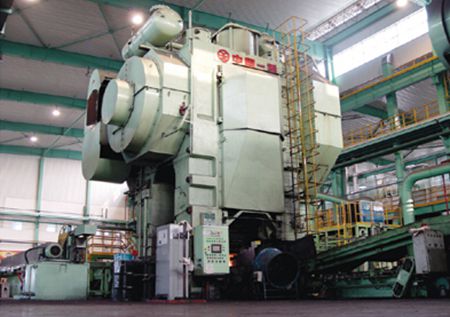 压力机冲压集成应用 机器人与压力机冲压集成应用主要有两种方式。一是单台机器人冲压上下料:通过机器人将板料从拆垛台移送到定位台,定位后再移送到压力机模具中实施冲压,冲压结束后,通过机器人取料放入堆垛台,实现单台压力机机器人自动上下料。二是机器人冲压连线:通过多台机器人在多台压力机之间建立冲压连线。根据加工工件成形工艺要求,需要在多台压力机配合加工,整条生产线由拆垛机器人,上料机器人、压力机之间传输搬运机器人,尾线机器人组成。与直线坐标的机械手相比,采用工业机器人更有柔性,对模具没有等高要求,容易集成。埃斯顿利用自主压力机控制系统和机器人控制系统无缝连接,使机器人的动作和压力机达到最佳协调,利用现场总线,使整条生产线效率最大化,安全性更高。 热模锻集成应用