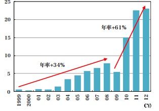 瑞穗银行产业调查部的报告则显示,中国对产业机器人的采购需求实际上维持着更为快速的增长:1999年至2008年年均增长达到34%,2009年受到金融危机影响有所下降,但2010年之后出现更为惊人的增长,2009年至2012年的增长率达到61%。 瑞穗银行产业调查部进一步预测认为,2012年至2016年全球产业机器人的需求增长率将达到约20%,其中日本、欧洲、北美等发达国家和地区止于10%左右,中国则有望达到65%以上,因为“人工成本的持续上涨,以及对稳定品质、高附加值制造加工的需求,将是中国未来的大势所趋。”
