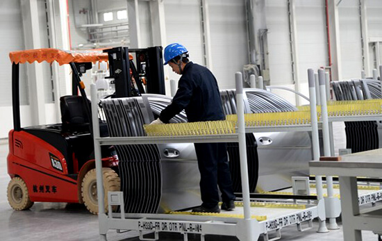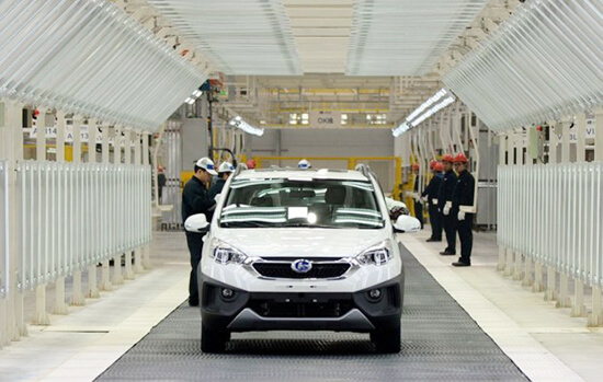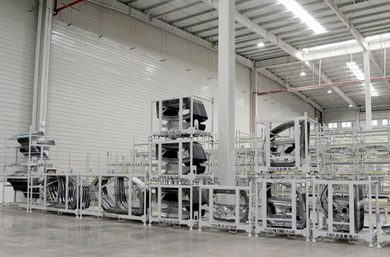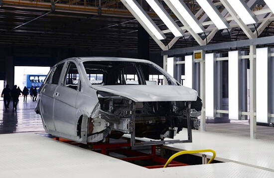 焊接好的车身将被送进涂装车间,但由于本次参观时间有限我们并没有参观这座车间,据了解该车间内建设有一条机械化自动流水生产线,采用水性漆3C1B喷涂工艺,排放也符合国家标准。