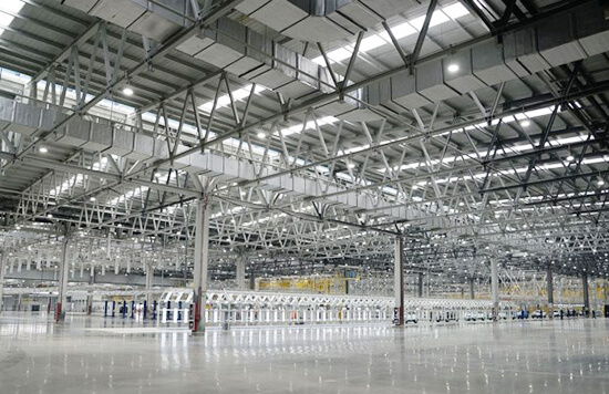 最后我们来到的是最重要的总装车间,这座建筑面积99076平方米的车间是目前江西省最大的单体厂房。但是目前该车间仅使用了不足一半的面积,所以看起来非常空旷。由于时间的关系我们仅针对该车间当中的合车工位进行了参观。