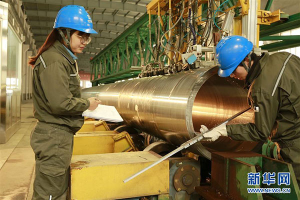 12月5日,技术人员采用世界先进的超声波探伤设备进行产品质量检测。在我国石油化工、煤化工、核电领域的大口径无缝特种钢管长期依赖进口的背景下,近年来,中兴装备瞄准我国需要大量的大口径厚壁无缝钢管的市场需要,进行科技攻关,在2012年初成功研发出直径610毫米、厚度68毫米的TP347不锈钢无缝管。在此基础上,该公司通过创新技术工艺,在制造过程中应用了ESR精炼、固溶热处理、高压碎冷等多种新工艺、新技术,并于今年6月,顺利制造出直径达711mm、管壁厚度达88mm的产品,经国家钢铁研究总院、国家钢铁产品质量监督检验中心、南京航空航天大学等单位的联合鉴定,该产品综合性能达到国际先进水平、可替代进口、可应用于石油化工、煤化工等领域,填补了国内空白。到目前为止,中兴装备已经成功研发生产出直径219.1毫米—711毫米、壁厚29毫米—88毫米的13个TP347H系列产品,曾先后多次填补国内空白,并取得了美国能源公司核电材料生产许可资格。