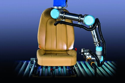 传带上:UR5机器人被安装在传带上至Lear的车座,车座事先已经手动安装了螺丝。与其他工业机器人不同的是,UR机器人无需安全围栏和特殊防护就可以直接与人协同工作。 李尔公司是一家专供座椅系统与车载电子器件的国际汽车零部件供应商。在该公司位于德国贝西希海姆的生产车间中,车座的生产曾需要工人倒班轮流工作、从而完成“及时”装配。这项工作的关键在于快速灵活操作,并同时确保产品的高质量。但由于车间工人对于机器人技术的了解少之又少,所以理想的自动化技术必须要具备低维护需求、易于操作和编程等特点。 李尔公司面临的一个严峻挑战是生产厂房内的空间有限,生产流程中的每个环节都需要在这个空间内的一条传送带上一个接一个地完成。因此,李尔公司需要一个小型、便于移动的机器人,以实现人机协同工作。 与机器人同事并肩工作 系统集成商Faude Automatisierungstechnik能够为李尔公司提供一个满足全部要求的解决方案:那就是来自丹麦机器人生产商Universal Robots(优傲机器人)的六轴轻型机器人UR5。该机器人小巧轻便,仅重18公斤,可触距离85厘米、负重5公斤。对李尔公司而言,这种机器人一个主要的优势在于它直观的用户界面;编程可通过操控触摸板上的箭头按键来指示机器人移动方向,或者直接控制机器人手臂来展示如何执行某个动作。李尔公司仅需一天训练就能使全体员工熟悉这些机器人。与那些需要占用整个房间又笨重的自动化机器人技术不同,这些UR机器人可以无需任何安全防护措施,直接进行人机协作:一旦员工与机器人接触时产生了大于150牛顿的力,机器人手臂就会自动停止运行。优傲机器人的安全性已经取得了欧洲ISO体系验证,符合合作型机器人的标准。除此之外,为了避免任何安全隐患,Faude也详细检查了项目中每个应用环节,确保生产的万无一失。